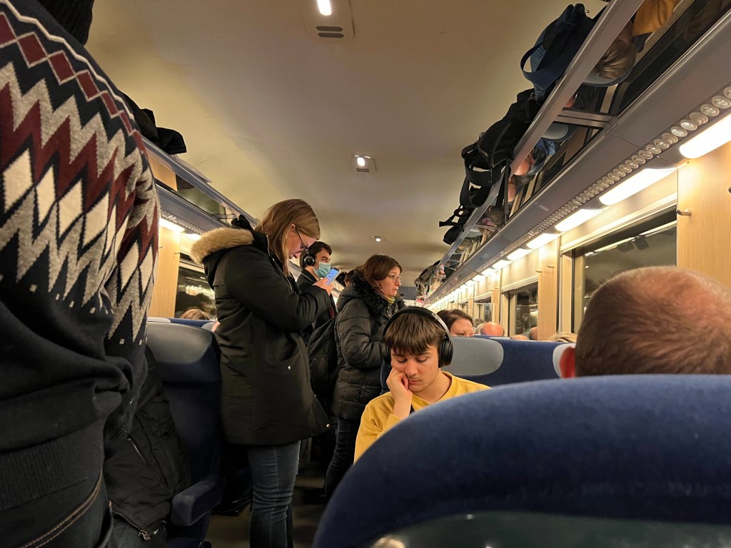 On the 20th we began our trip to Vienna, for the Christmas holiday. Of course the journey was not without our regular silly mishaps. Our first train from Lille to Strasburg had assigned seats and was a very pleasurable, relaxing 3 hrs. We changed trains in Strasburg and it was so packed that we didn’t have a chance to determine which coach was ours and grabbed the seats we could get. The very first train we’ve ever ridden where the aisles were full of standing people because there were absolutely no seats left. It was a sardine ride for an 1 hour to Mulhouse. In Mulhouse we changed trains for a 2 hour trip to Zurich and that was a night and day’s difference. Big seats, leg room and the coach pretty empty. At this point all we’d had to eat were chips. The gap between the arrival in Zurich to the train change for Vienna was an hour, in which we picked up a bunch of empanadas and a couple of beers from a Christmas market situated in the large station. They were closing, which was a shame because their handmade goods looked so original.. We were lucky to snag the food and knew the sleeper to Vienna wouldn’t be serving food at 9pm – it was a good call.