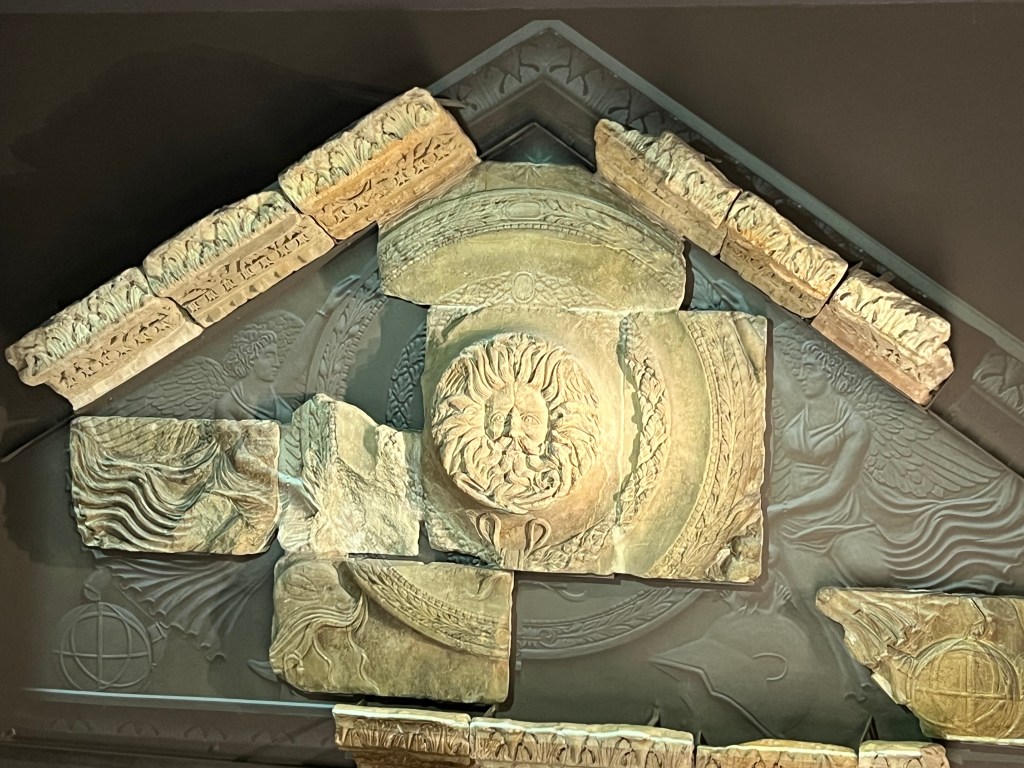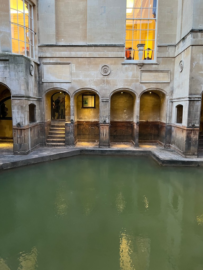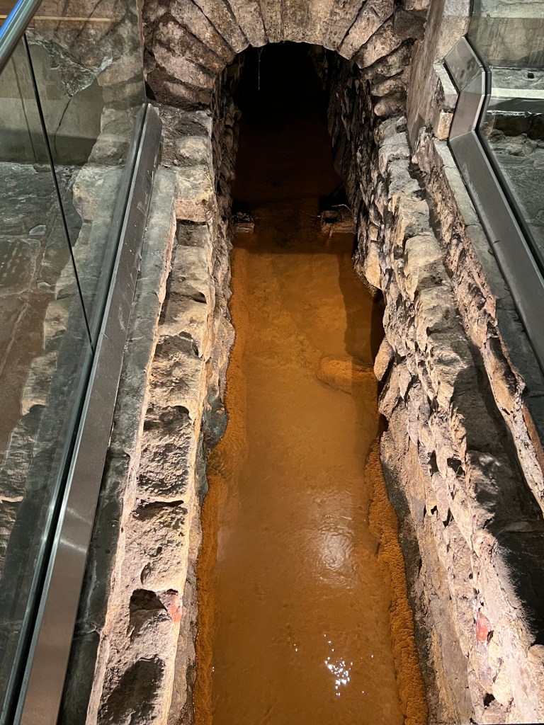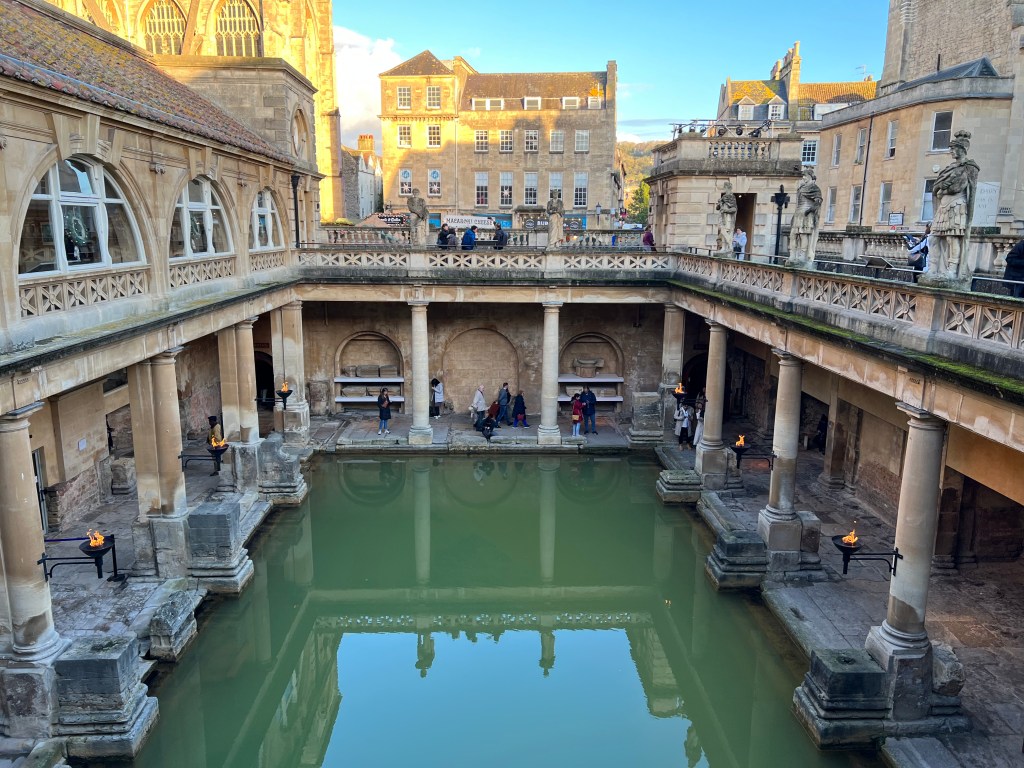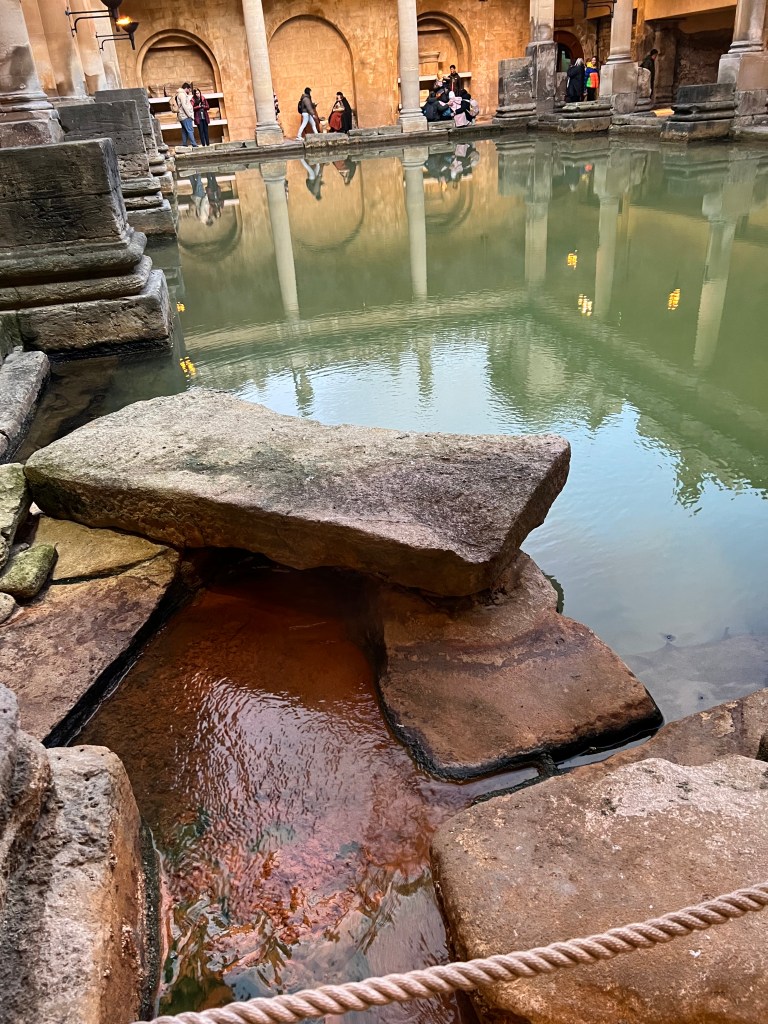 We stopped at a Marks & Spencer. They used to have a small one in Lille Flandres train station before Brexit created the issue of needed EU extra screening on their English products, which made them close all of their French stores. G loved their sausages. He was crushed that he couldn’t even take them back by train. Anyway, it was two stories and while walking around, I picked up a large span, full umbrella and a large span, travel umbrella – both sorely needed. We lost the one, full good one we had and our current one is a way-too-small travel umbrella, with a broken spoke. Pretty pitiful to be truthful. Next was a tour of the Roman Baths near by, which we have already covered.