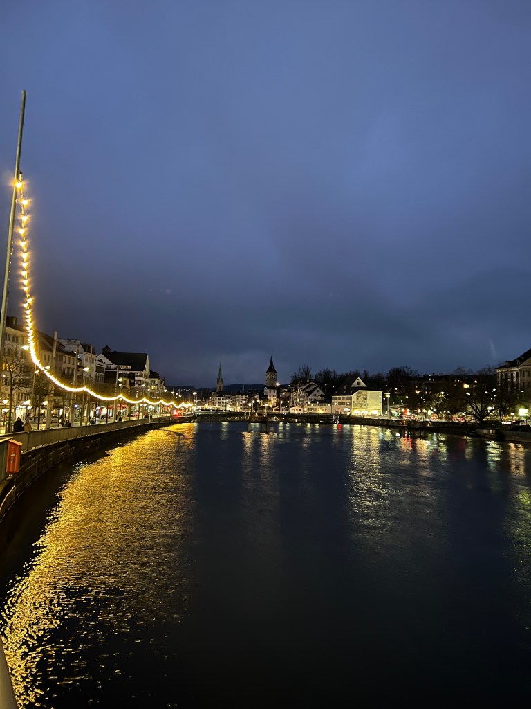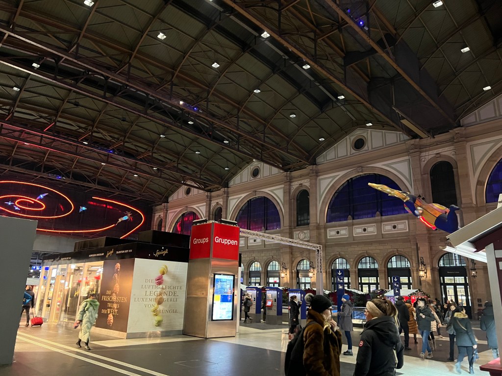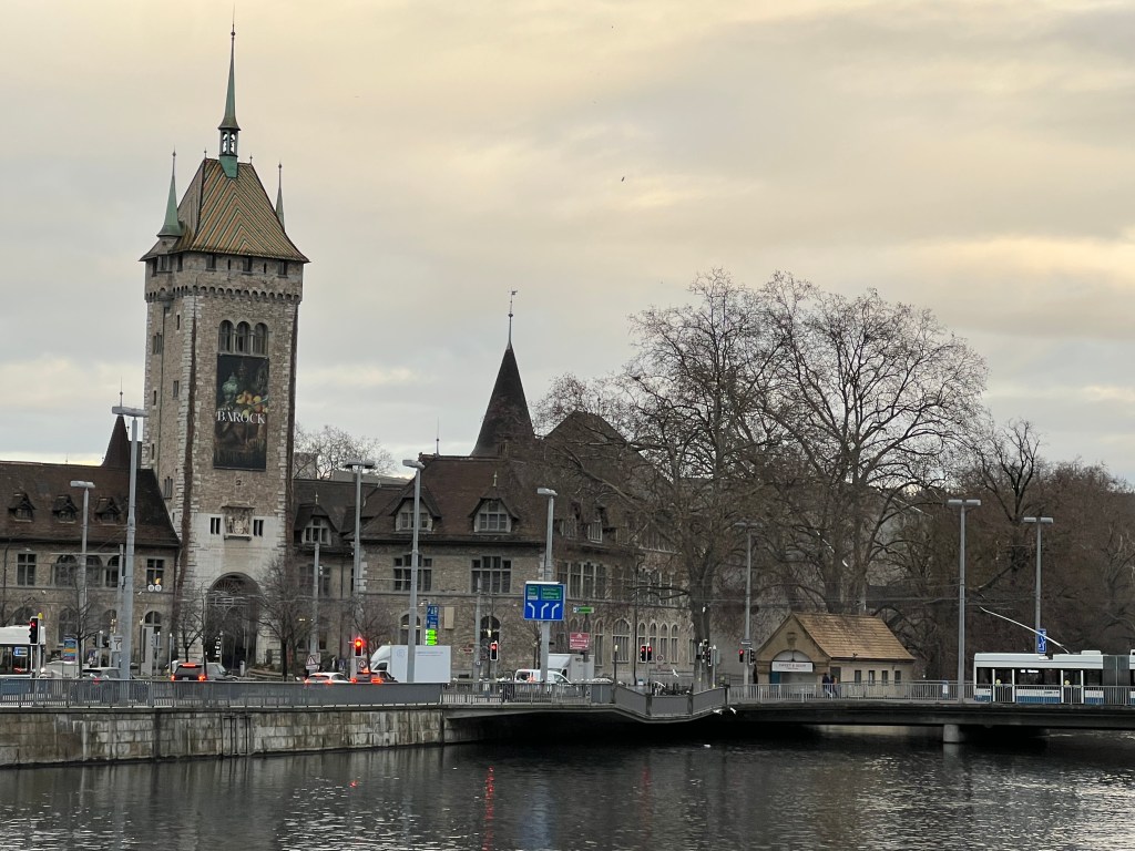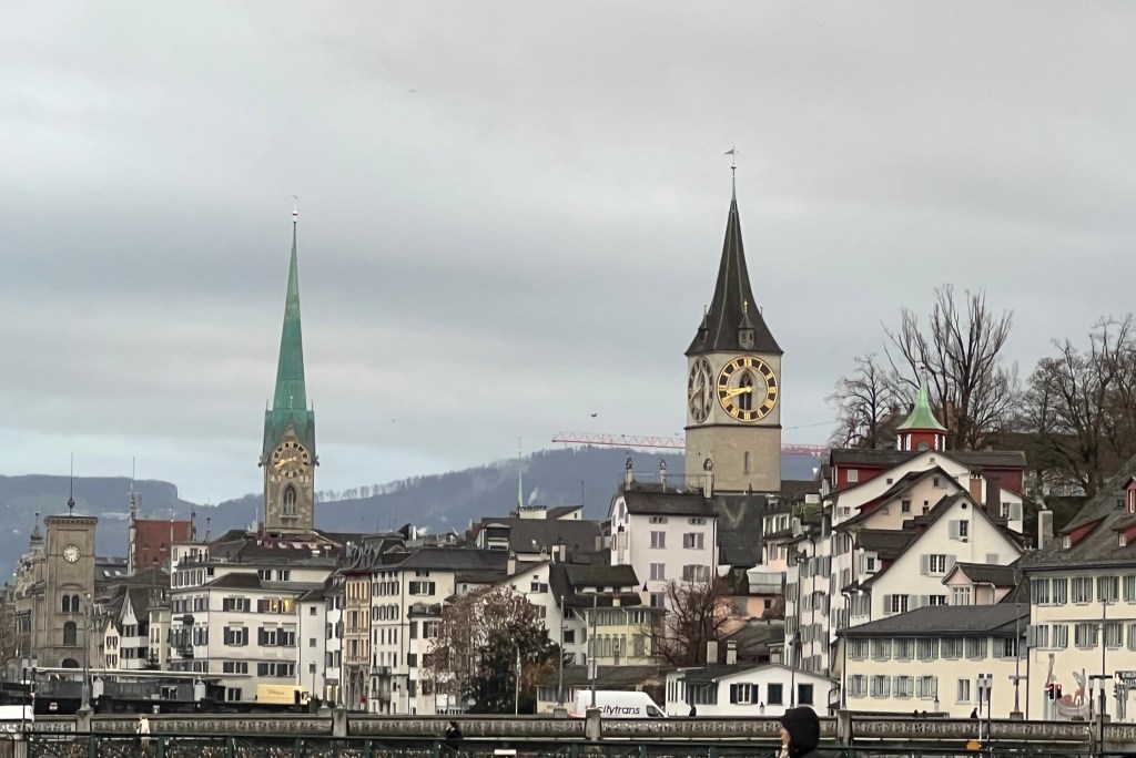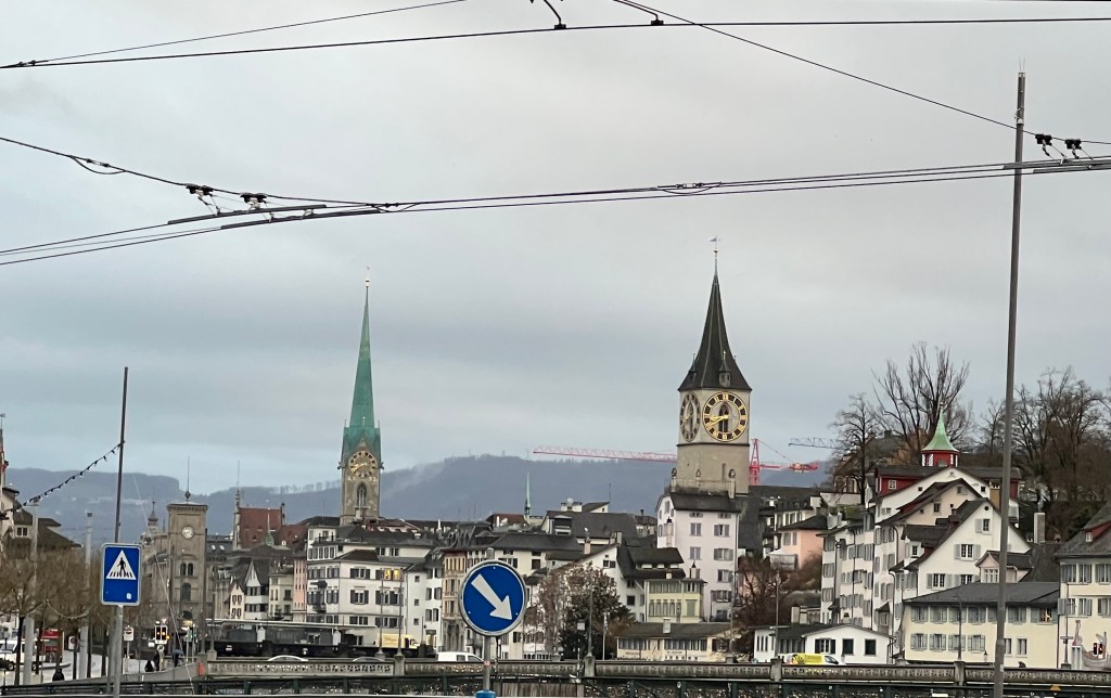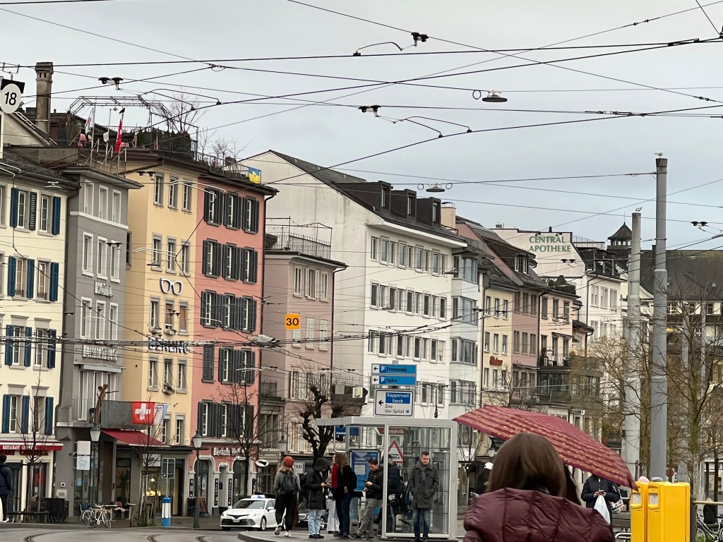 About an hour from Zurich, the train’s last 6 coaches were dropped off at one of the stops, which we’d never had occur on the trips we’ve taken. The plan was that after we arrived at 3:30pm, we would check into our hotel and spend the late afternoon walking the downtown area. Zurich is a beautiful city. When we arrived however, it was raining – not just raining but monsoon type rain. It was raining so hard we shamelessly took a cab from the station to the hotel, which was only a four minute walk – and thankful we did.
