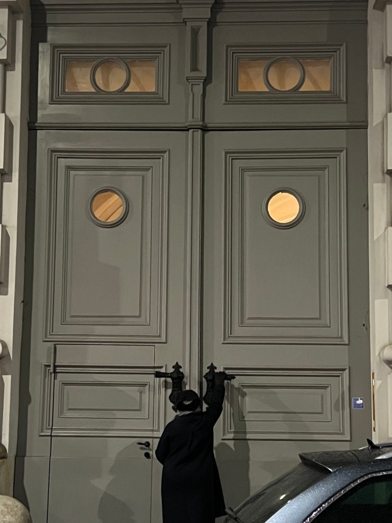 G had to include this last picture of someone trying to open some really BIG doors in Vienna, although if you look to the left, you’ll see that they also have a normal size door.