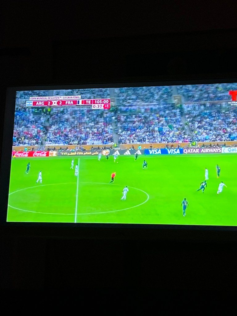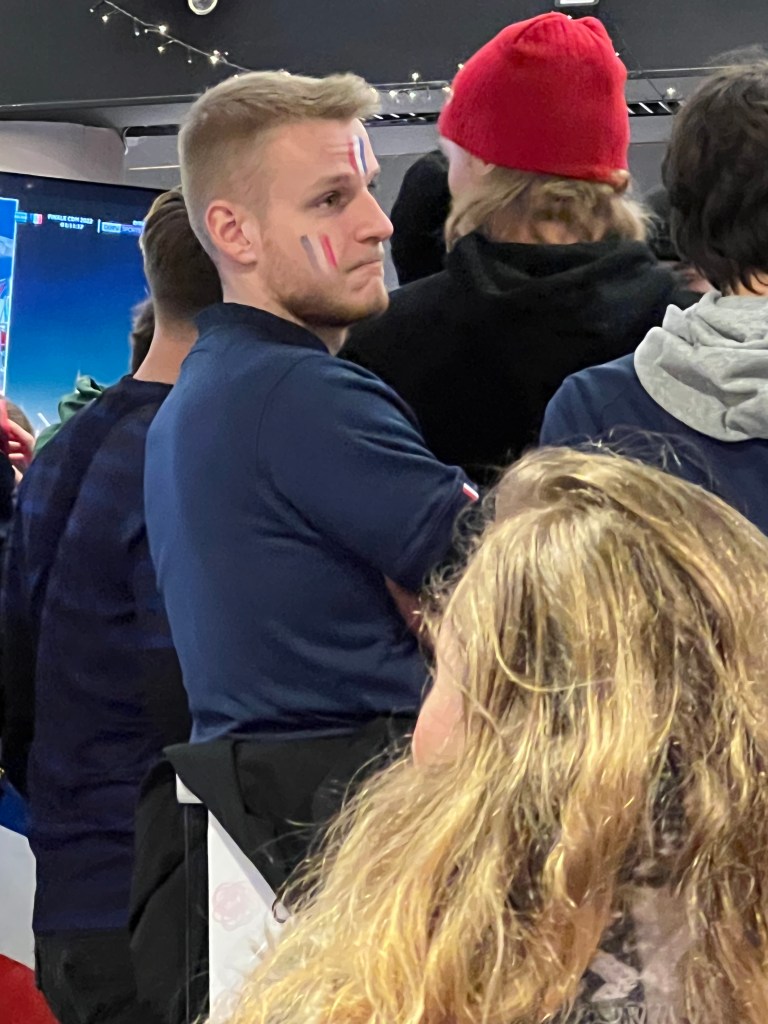We got caught up in watching the World Cup matches. The more we watch, the more impressed we are with the athletes. The foot work, the twisting of their bodies – flying, running at top speeds – all mesmerizing. A lot of long quiet spaces of just up and down the field but when they need to work the ball into tight spaces, around opposite team players and to the goal – it’s intensive. We would love to be in a pub, cheering with other people like we did the first year we were in France – but with the virus, we don’t want to chance it. It’s a shame – the games are meant to be watched with the company of other cheering folk. And cheering and packed they were. We watched it at home; France made it to the final match, then lost to Argentina. It was a well matched game and suspenseful right up to the end.