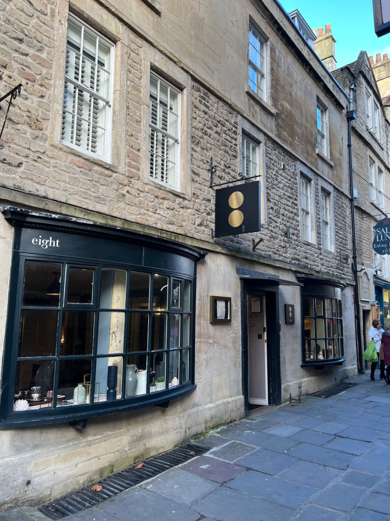 It was a lengthy trip to Bath. First hour and a half on the Eurostar through the Tunnel which was delayed in leaving by 30 minutes, then a second hour and a half stint on a regional train from Paddington Station to Bath. We got to the hotel at 6pm, unfortunately having missed their 4-6pm reception, and met a very charming young check-in woman named Monika. She checked us in, pointed us to our room and even recommended a place for dinner.