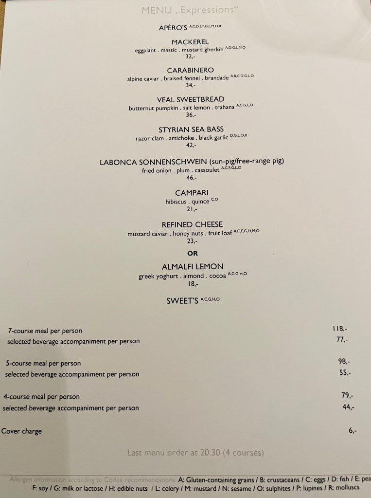 During our stay, we went next door to a restaurant called Das Schick, recommended by a very good Denver friend. It strictly served a choice of four, five or seven courses, with wine pairings. No exaggeration to say that every bite was sublime. It was heavenly. Of course, even with the four course choice that we made, we were exploding by the end. I do believe by the time we left Vienna, I resembled a Beluga whale.
