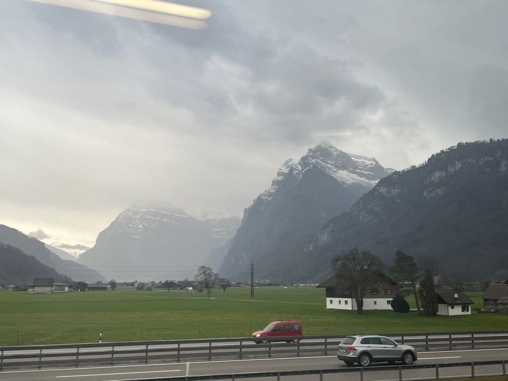 It was time to go home. We got up at 6am for the 7:20 train to Zurich. In the next eight hours we were treated to breakfast and lunch at our seats and also to the most stunning landscapes as we traveled through Marchtrenk in upper Austria, passing through the dramatic Austrian mountain peaks before reaching Tyrol and finally Zurich. We tried time and again to get good pictures, without success. It was an incredible treat to see and beyond our capabilities to capture this breathtaking experience for you.