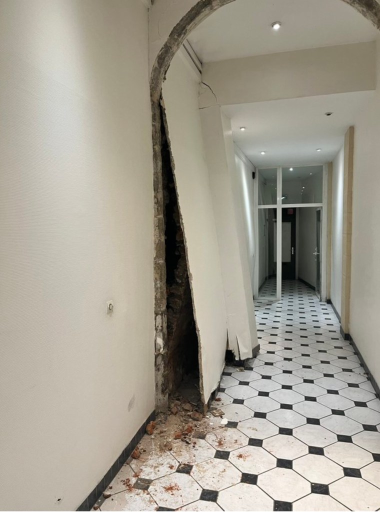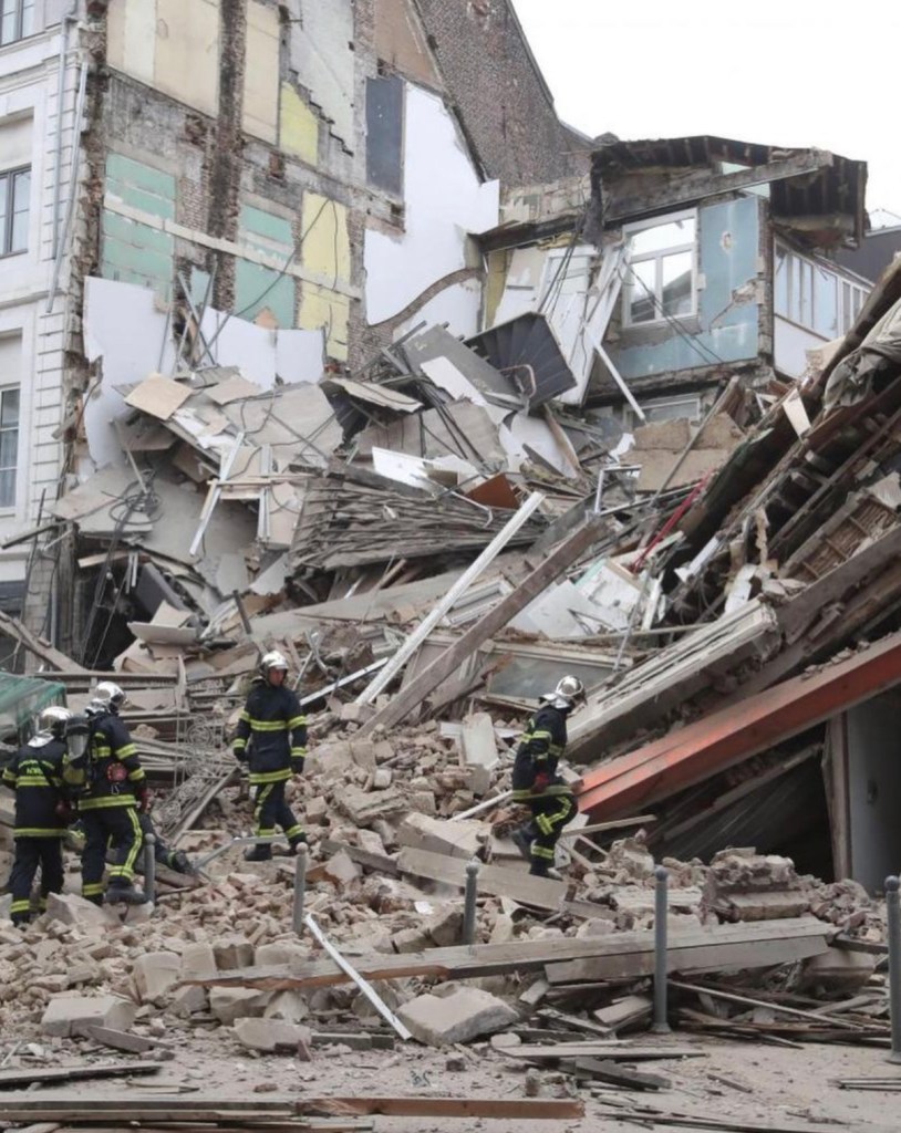 A young man, working late to get ready for a university test, arrived at his apartment at 3am and saw an interior wall that had buckled, showing the outside, adjoining building wall. He called the authorities, who arrived with firefighters and police. Once they viewed the crumbling wall, they immediately evacuated the whole building. They understood the neighboring connected building to be completely empty, so everyone they knew of was evacuated by 5am and the street was cleared, cordoned off from any traffic and the business’s had not been allowed to open. At 9am to everyone’s shock, the building completely collapsed onto the street, taking down the adjoining building along with it. No one was hurt in the vacated apartments as a result of all of the precautions.