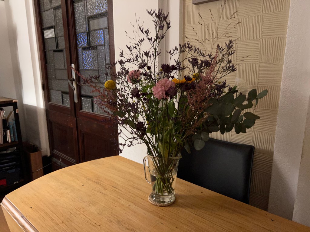 G spent the weekend taking care of one very sick puppy (yep, that’d be me), stuck in Caregiver gear. He did all the meals, laundered the linens, did cheerleading and got me some flowers to keep my spirits up. I alternated between the couch and the bed, trying to cough up my internal organs to donate to science – a very painful and fruitless exercise. Nothing alleviated the cough, which brought blinding headaches, constant fatigue and a low grade fever. Because I was unable to study, G put on the French radio news station to have the language going in the background. My nights contained very little sleep and a lot of horrific coughing that left nothing in my stomach. On Saturday afternoon, we needed to be certain of exactly what I’d caught and G went to the pharmacy for home Covid tests. If I had caught it, he’d also be in quarantine, missing French class too.