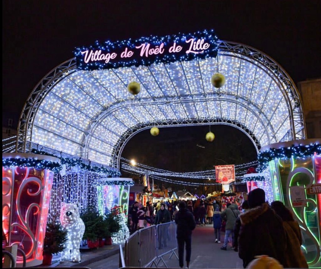Lille began to put up its Christmas market, which started November 18th. In the square closest to us, they have a ride that takes a string of two seater buckets – like a centipede – which runs along a circular track, which changes in height as it goes. As it travels up and down in the circle, it gains speed and a long canopy flips on top of the ride. It’s intriguing but not enough to lure us in. We watch it, wondering how often the canopy is cleaned – which we are sure that kids never think about. We certainly wouldn’t have thought about it as kids.
