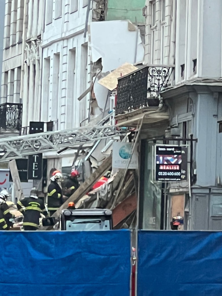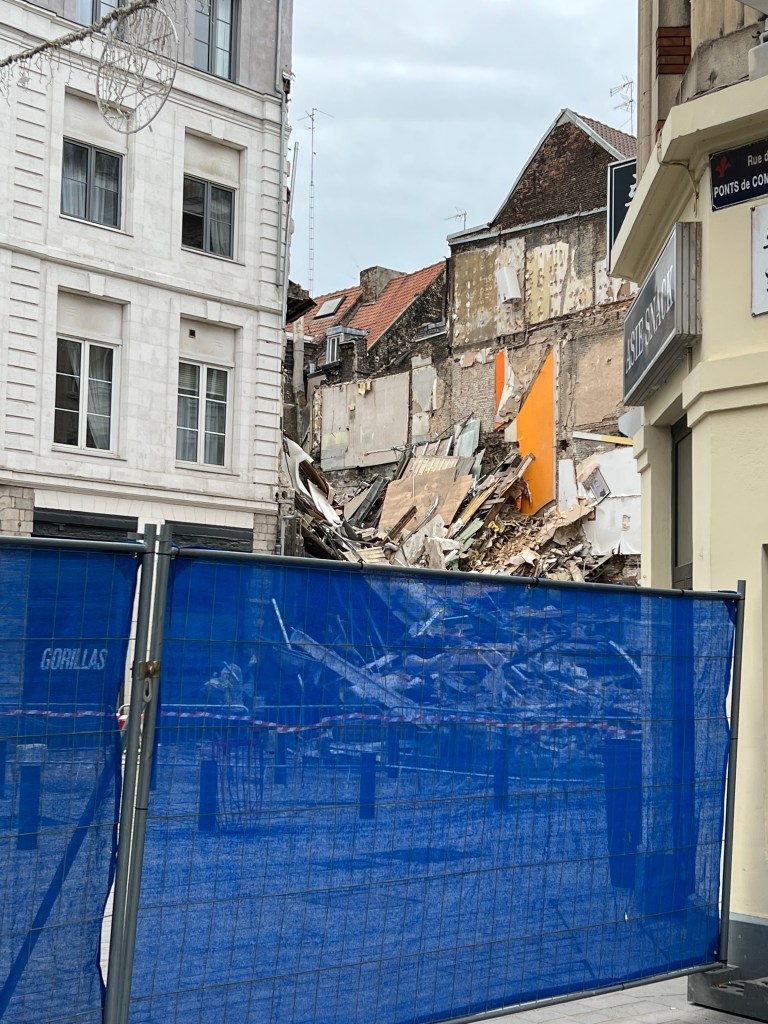 On Saturday we planned to take them through new and old Lille. G got out early to pick up fresh croissants and I put together a collection of the regular breakfast things: ham, cheese, hardboiled eggs, yogurt and blueberries – on our sideboard. After breakfast we went out and rounding the corner, came across the most amazing sight. Between the time that G was out getting croissants at 8am and we were walking around the corner at 10am, two buildings on Rue Pierre Mauroy had completely collapsed. We hadn’t even felt so much as a shudder in the apartment and it was on the block behind us. Few details were known and didn’t unfold completely until after the weekend.