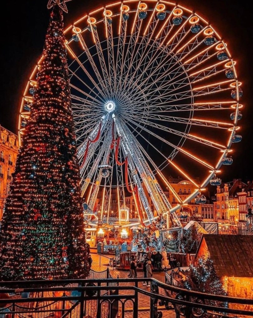 In the other square, they put up a Ferris Wheel which we tried our first Christmas here. The weather was a strapping 34 degrees and we took pictures of each other all bundled up and looking as frozen as we felt. It was enjoyable but we specifically went at night to see holiday lights. It was a surprise that the holiday lights did not extend far beyond the city center. Still a lovely view. If we do it again, I’d go at dusk where you can see all of Lille at it’s best. Dark of night, scant lighting outside of the center – you get less of it. I’d be more cavalier about trying it again, if I hadn’t just gotten over this bug.