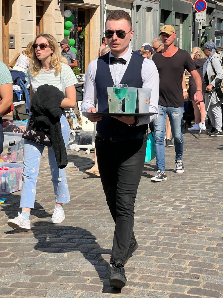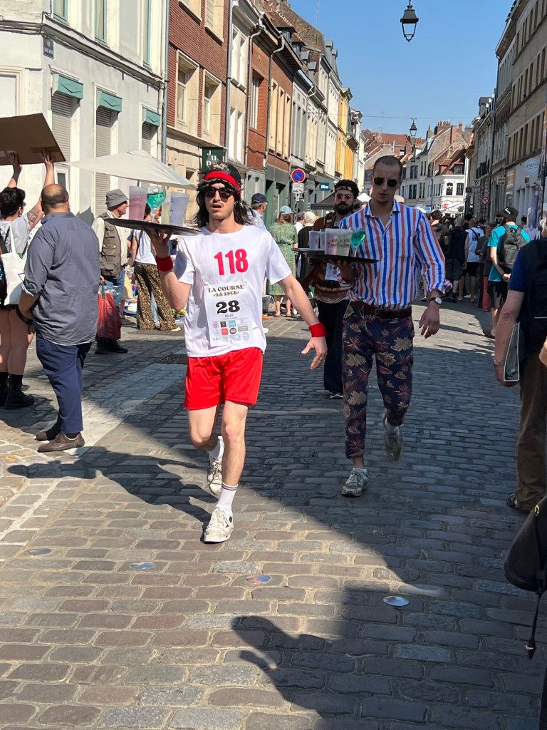 For the occasion, the restaurant La Luck organized its annual race for waiters. Servers, room managers and maîtres d’hôtel were invited to participate. With a tray and 4 glasses filled with tinted water, they had to walk/run as fast as possible without spilling the glasses.