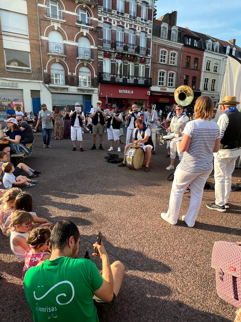 In between our study and class attendance, we celebrated our 49th year anniversary. It fell on the last class day of the week, a Thursday, and like life itself was not without mishap. After the class ended, we stopped with our friends and American classmates, C & B, for a pint at a favorite outdoor café. We all toasted to the occasion before heading separate ways. G and I decided to check out a gastronomic festival happening about a 30 min walk from Lille central for dinner, instead of having a formal dinner at a restaurant.