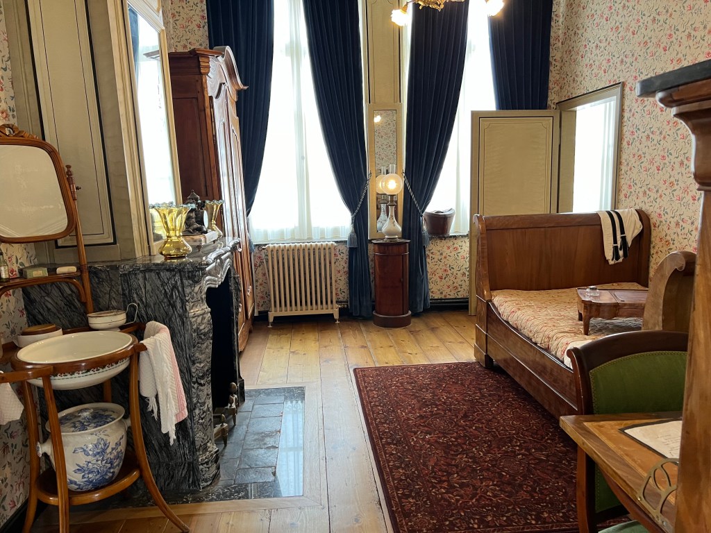 Our one excursion in the last two months was a tour of the Maison natale Charles de Gaulle (house where CDG was born), here in Lille. It is a typical bourgeois house from the end of the 19th century. He never actually lived there (his parents lived in Paris) but he was born there in 1890 and his maternal grandparents inhabited the house their entire adulthood. Until he was 22, he stayed very regularly in Lille: for five months at the age of 6 when he was educated at the Notre-Dame de la Sagesse school in Lille, for family reunions and holidays. He also took advantage of the proximity of Antoing (in Belgium) where he studied in 1907-1908 to return regularly to Lille to see his grandmother.