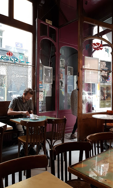 All of this to say for the last two months. So, no blog. And, we continue to frequent our cafĆ©s and bars here in Lille where we meet up with friends and the barkeeps. One in particular – LāIllustration – where we hadnāt been in a while, is tended by Richard, the bartender and great jazz music aficionado, whose wife is an artist and her work graces the walls. Itās always good to see him and chitchat.