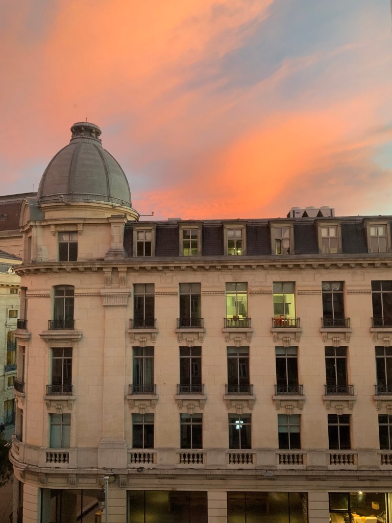 But back to our personally, quite boring month. French, French and more of the same. But we signed up for it so we have no right to complain. That said, by the end of the second week, my personal intake on white wine had increased to alarming levels. After months of sobriety, to fall so mightily. G has promised to keep me off the streets and out of the gutters. I’m going to hold him to that. And, two early morning photos from our balcony that G wanted to make sure that we share with you. Happy Fall everyone !