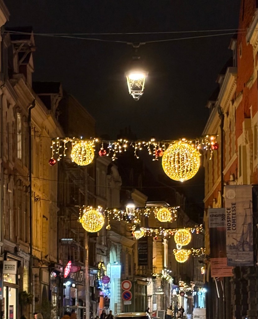 Back to Lille, it was time to put our own celebrations together. Last minute treks about the bustle of downtown for shopping, enjoying people out-and-about and the hot frankfurter and sauerkraut rolls with hot wine at the Christmas market, then back home for wrapping and calling loved ones. It was the perfect season for us, filled with innumerable blessings.