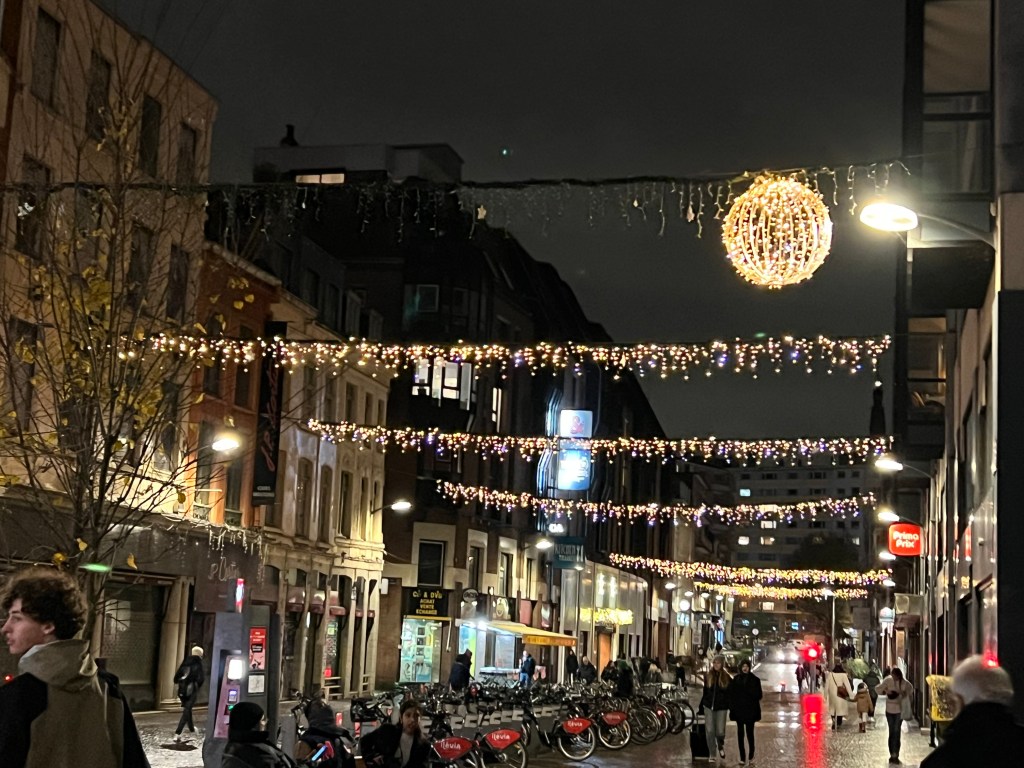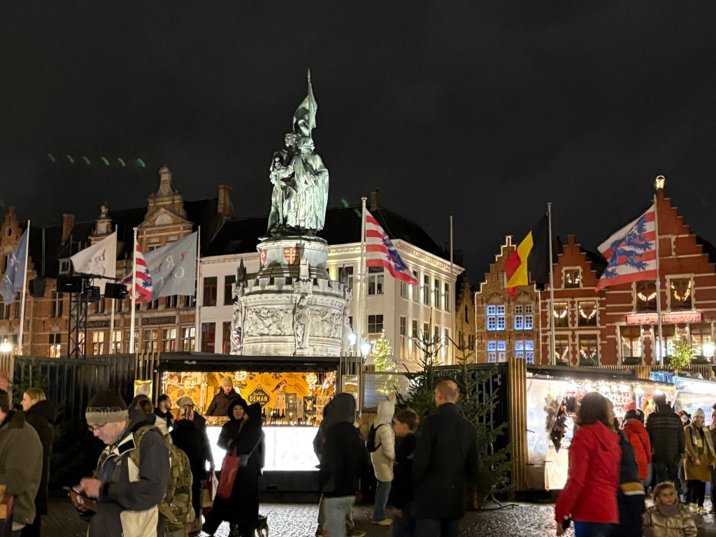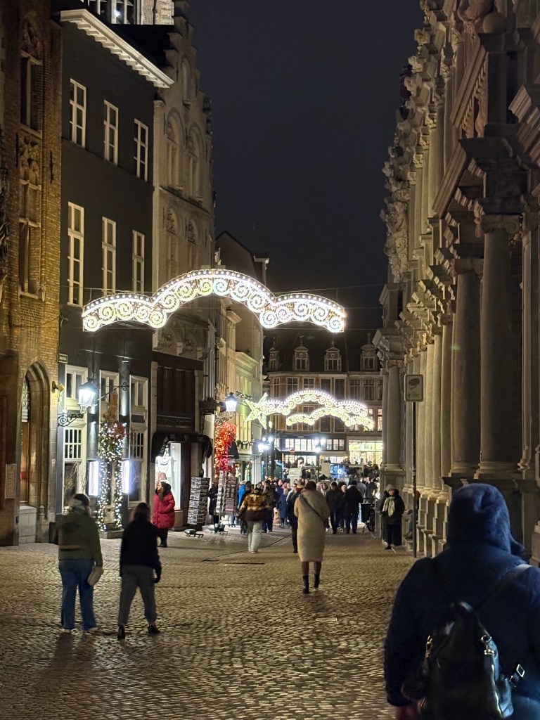 The kitchen became a serious mine field as batches were completed, wrapped and stacked on the kitchen window sill (which kept them all chilled perfectly). Boxed and wrapped for gift giving, we delivered them to all of the building neighbors, our favorite café and bar staffers, our pharmacists, dentist and lastly, our friends. All done in time for them to have on hand through the holiday festivities. Then the kitchen cleaned and closed, we went to Bruges for a few days to see their Christmas markets. We had been to Bruges previously and loved it and this quick trip was to enjoy their Christmas market and festivities.