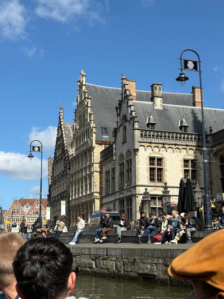 We stopped for a beer along the canal after perusing a few shops and G, M and E decided to take the scenic boat ride tour of Ghent, leaving me to wave them off as I enjoyed my pot of tea on the side.