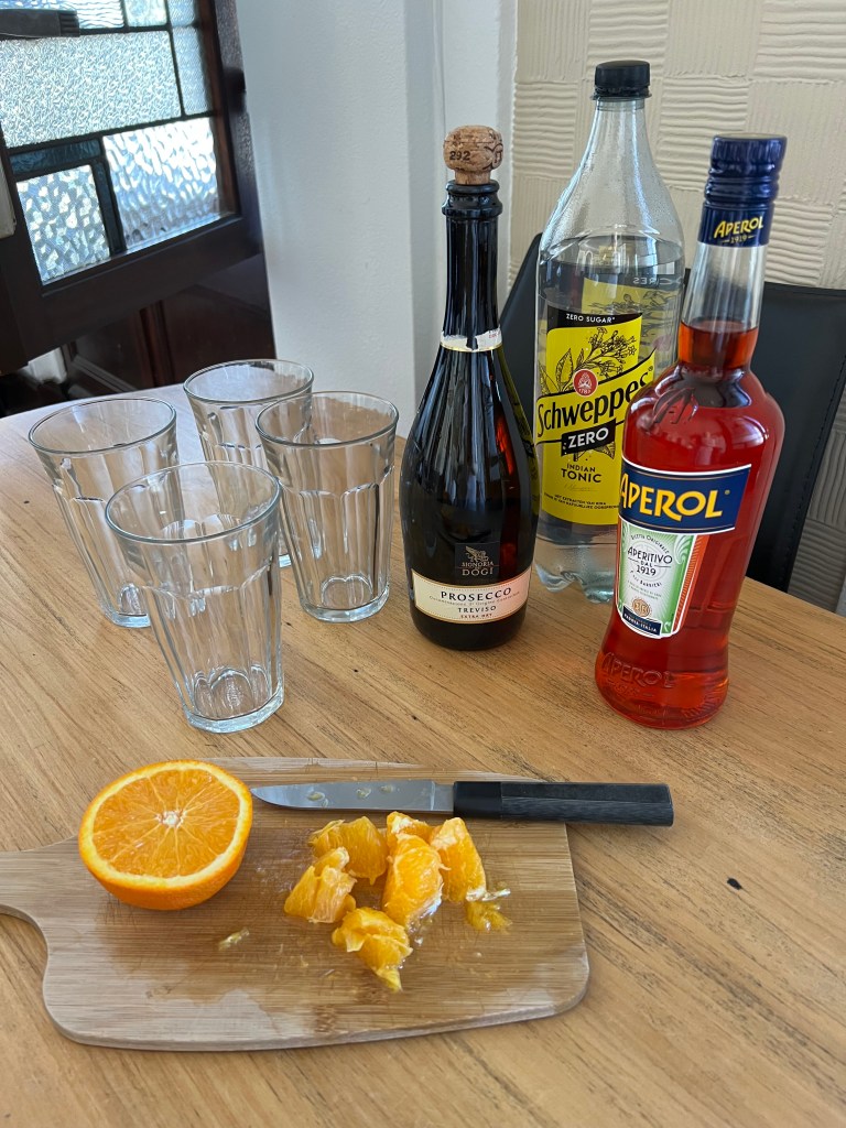 Our top floor neighbor, Audrey, was kind enough to warm up one of our cold evenings with a tutorial on how to make a local favorite drink, simply called ‘a spritz’ and shared the recipe Ingredients: Aperol (4cl or 1.35oz), Prosecco (6cl or 2oz), Tonic (4cl or 1.35oz) and an orange. Cheese and biscuits (crackers) recommended.