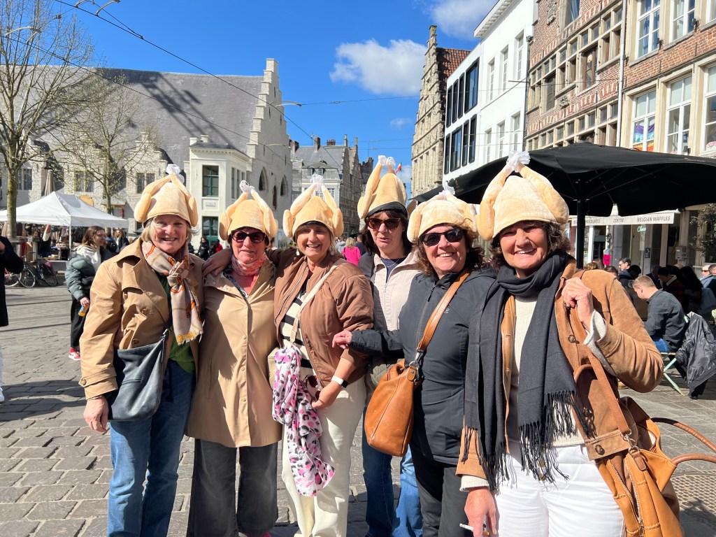 Upon entering, we were passed by a group of women wearing the most outrageous chicken hats. I asked for a photograph and then asked them why they had them. Life long friends, they traveled together and every city they visited, they would get matching hats of what the town was known for. Apparently Ghent is known for it’s chicken soup, “Waterzooi”. So when we stopped for lunch, I absolutely had to order it. It was delicious !!
