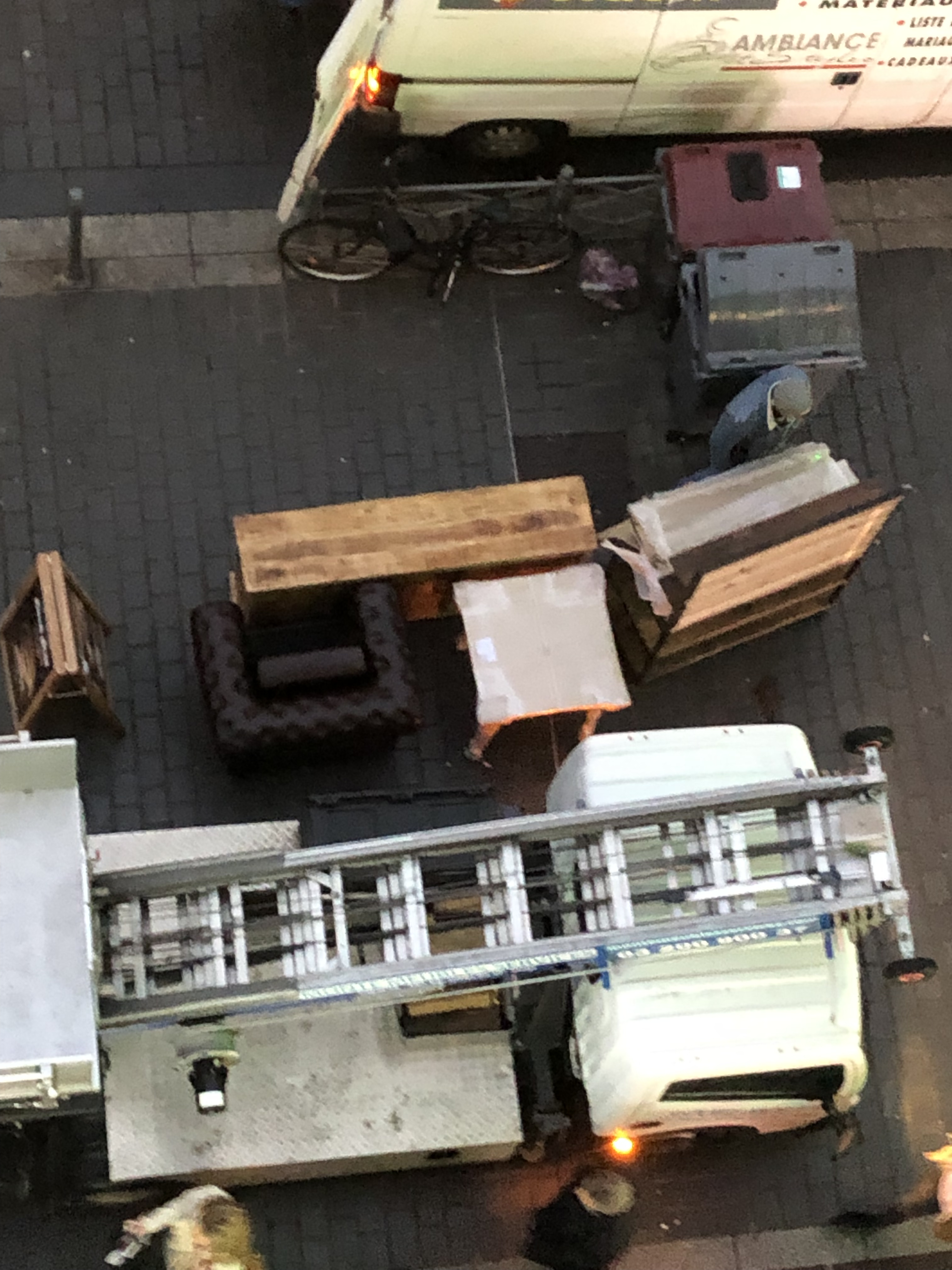 There were the usual problems of things not coming when we were told they would, arriving with a bit of damage (us too tired of not having those things to return them) and French speaking delivery drivers meeting two American’s speaking appallingly, very little French. When the rest of the furniture did arrive, it was delivered on a rainy, busy Friday evening, through the living room window, as we had often seen done in Paris.