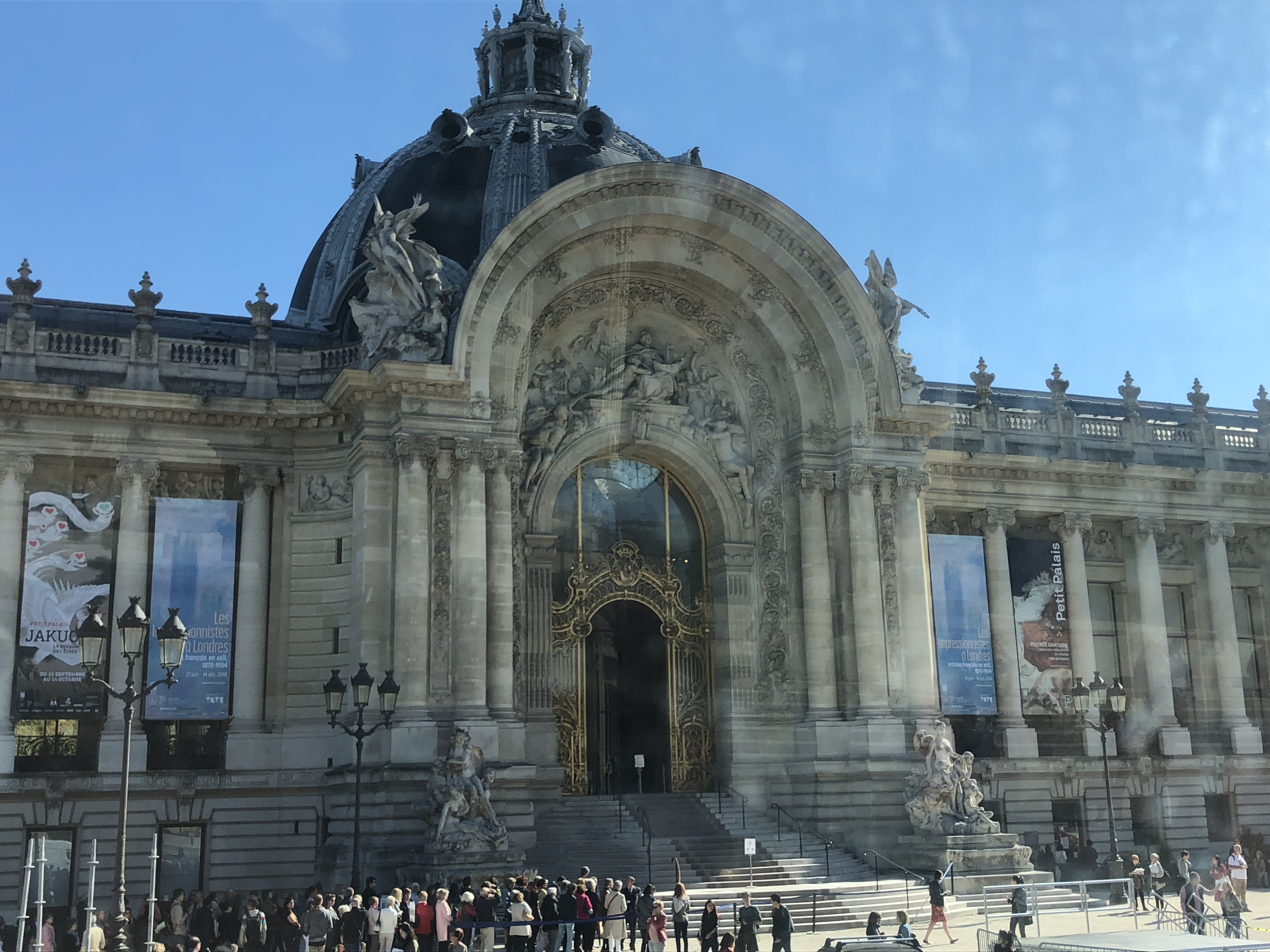 We did visit the outdoor puppet show at the Champs-Elysees garden and saw the stamp collection vendors along the avenue, aka the movie “Charade”. On the particular show which we saw, there were few in attendance but there were more in attendance at the following one. We were having lunch across the street at an outdoor table and could hear the children laughing and shouting. The short skits involved three characters; a policeman, a father and a son. The first one, it’s night and the father is trying to get to sleep but the son keeps waking him up, which eventually requires the father to chase the son. The father is asking the children in the audience where the son is hiding. The kids in the audience are more than happy to help, yelling, “He’s over there! NO, over THERE!, NO, behind you!” and so forth. The second one, the son is trying to catch a rat (the kids are yelling; “No, you don’t have him! Over there! NO, he’s NOT in the box!”), then he accidentally hits the father with a skillet, knocking him out. The son is sure he has killed him, running around crying with remorse, as the kids are yelling, “He’s NOT dead! NO, LOOK, he’s not dead!!” Then the third is a continuation with the policeman arriving and checking the body, then chasing the son – more chaos and more helpful guidance, yelled by the kids. It’s the audience participation which makes the whole show. The puppets stopping what they’re doing and asking for help from the children, who are eager to do so. It was great fun and no surprise it’s gone on since the late 1880’s.