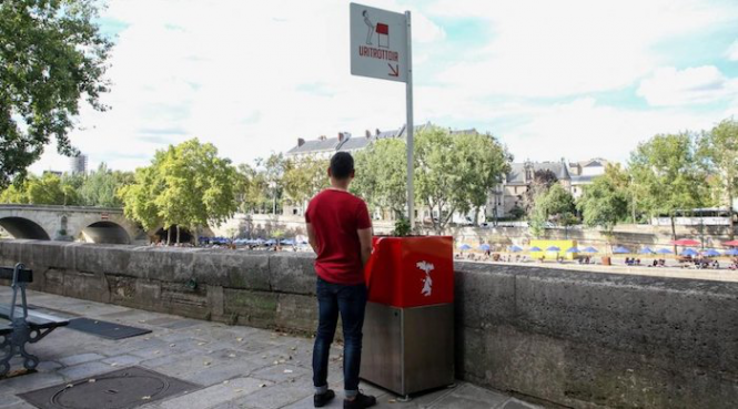 *Europe has a different concept of public restroom ètiquette than in the US. Men and women oftentimes share the same restroom and Paris, as with other large European cities, are looking for answers to men urinating in public on the streets. Thus, the “uritrottoirs” which appeared this year, even on our Ile St. Louis. It was soon removed after vandalism and controversy.