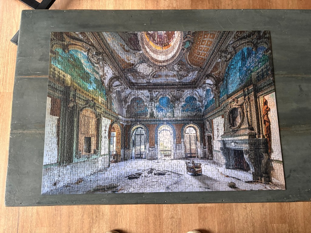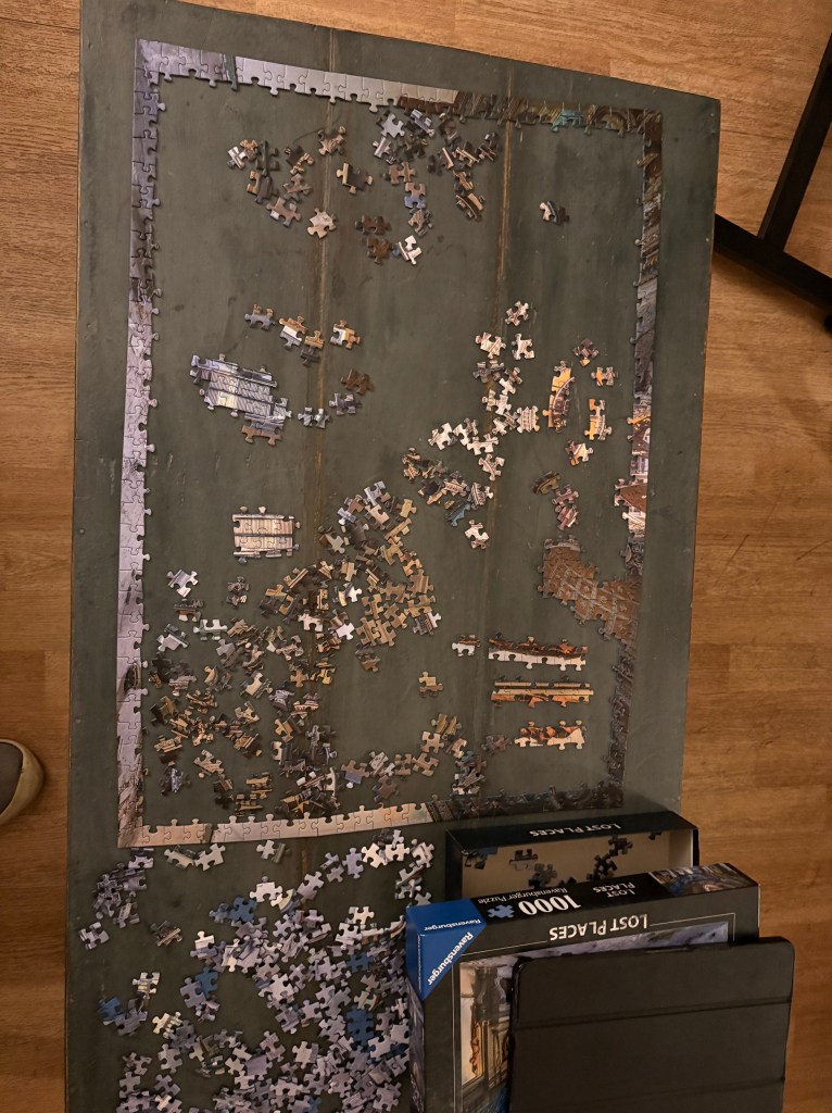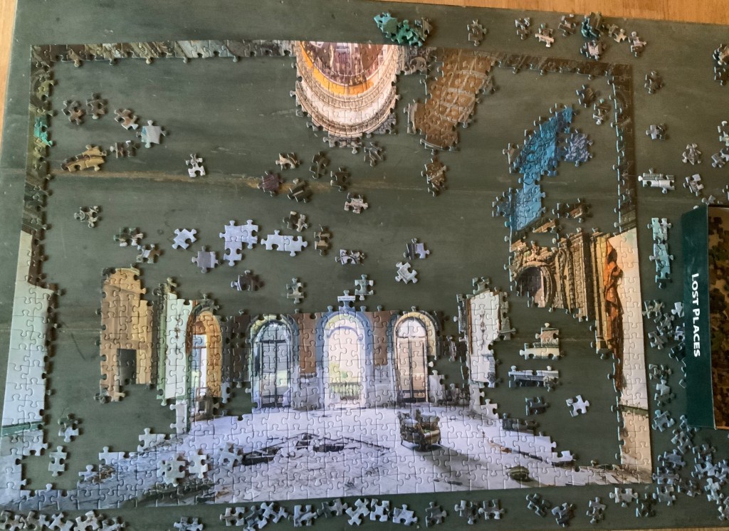 We worked on the second puzzle, which turned out to be much harder than the one we did last month and sorry to say that G will insist on giving you pictures of this one too.