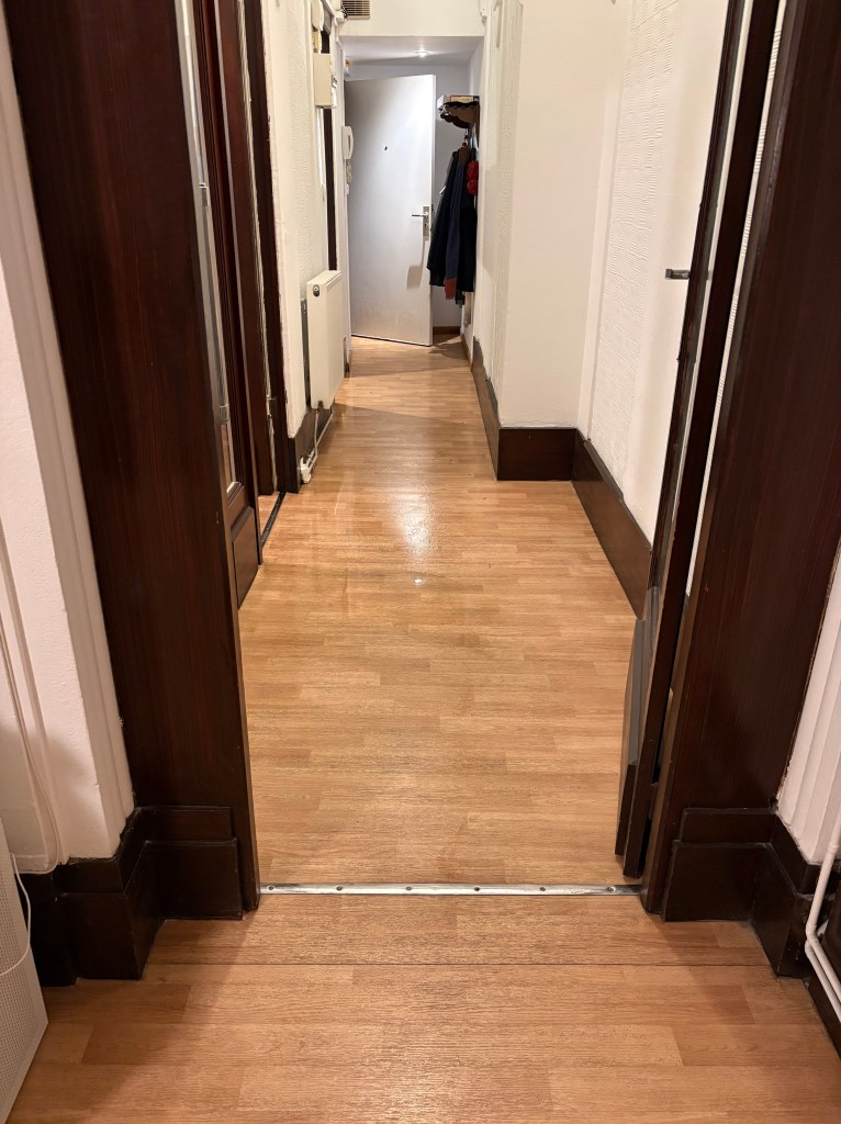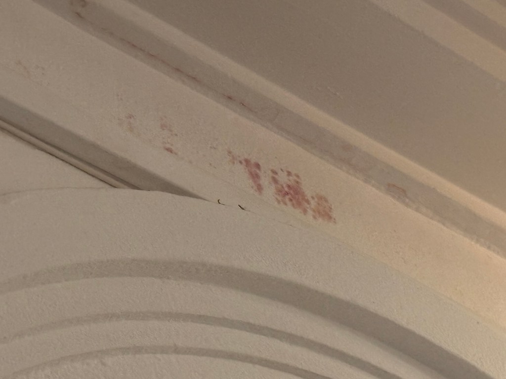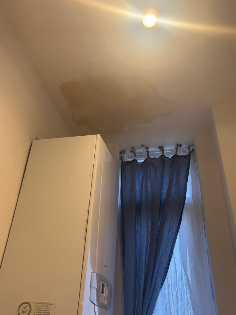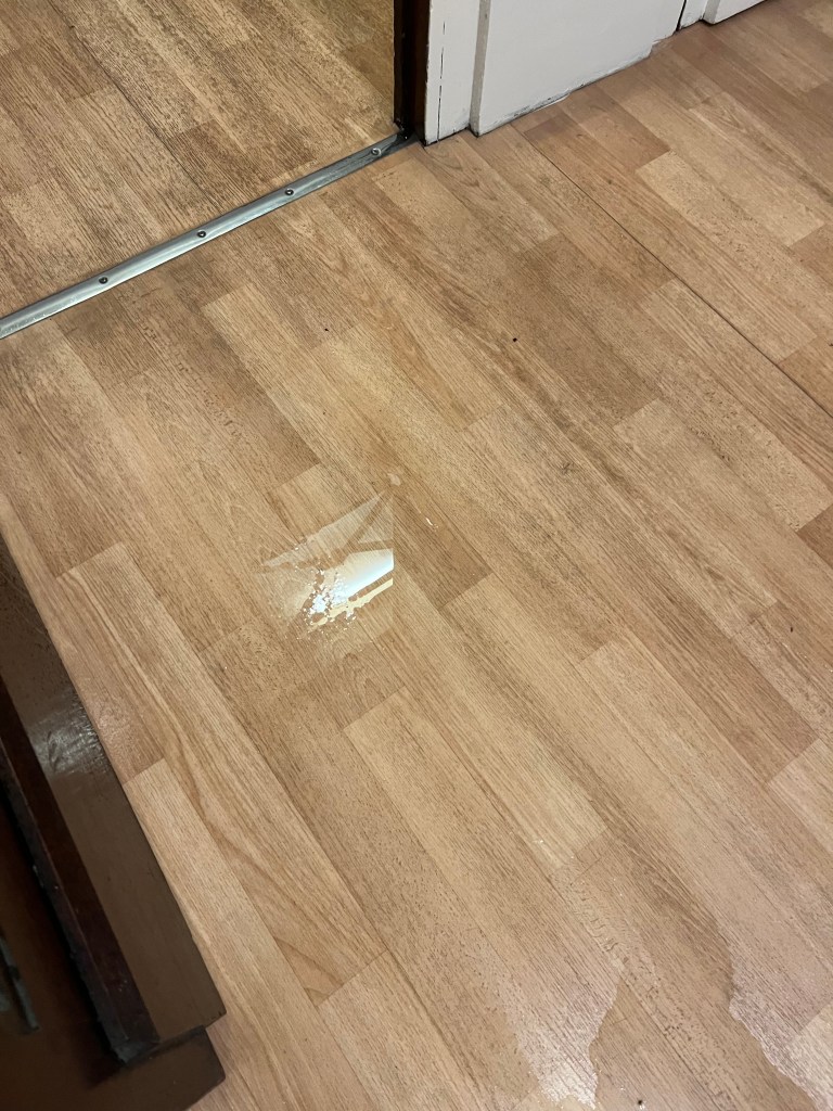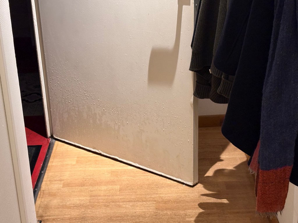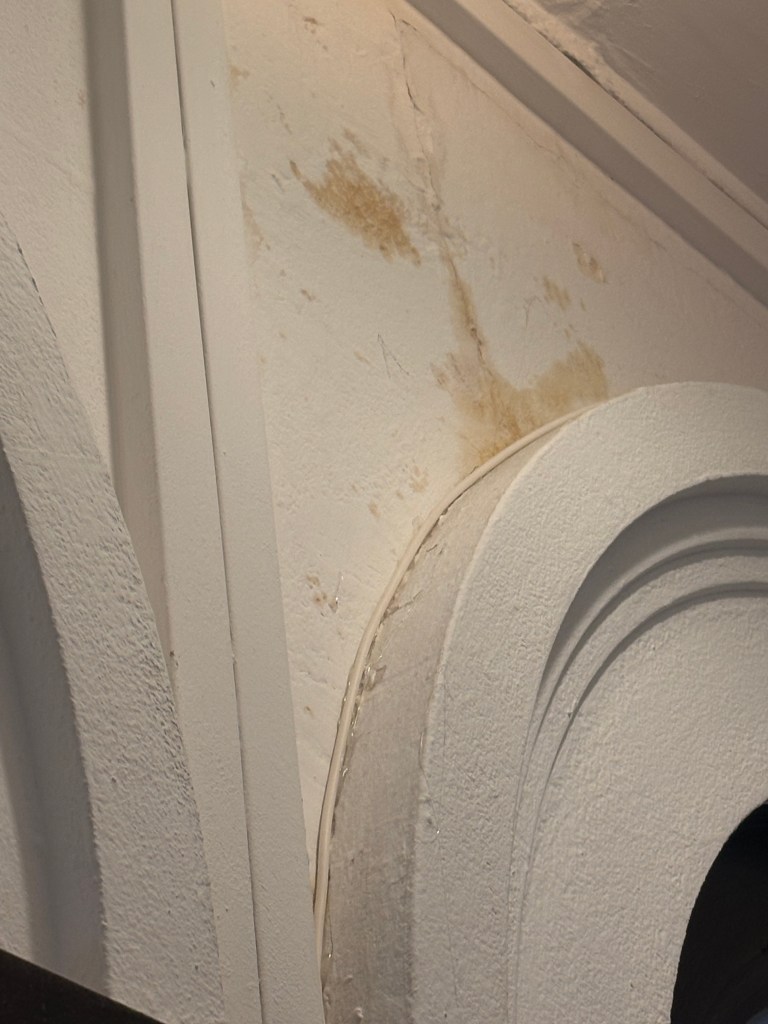 Once he returned, he reported to me that he banged on their door to no avail and then let himself in, yelling “Anyone Home?!!”. Also no answer but now he was standing deep in water and the bathroom sink faucet was running full on, filling the sink, the floor and the hall. He took pictures, turned off the faucet and calling out again, left the apartment to return downstairs. We spent the next hour cleaning up our place and in hindsight we should have gone back up to mop out their apartment but we didn’t even think of it as we trudged back to bed. It might have saved us some further wall and ceiling damage.